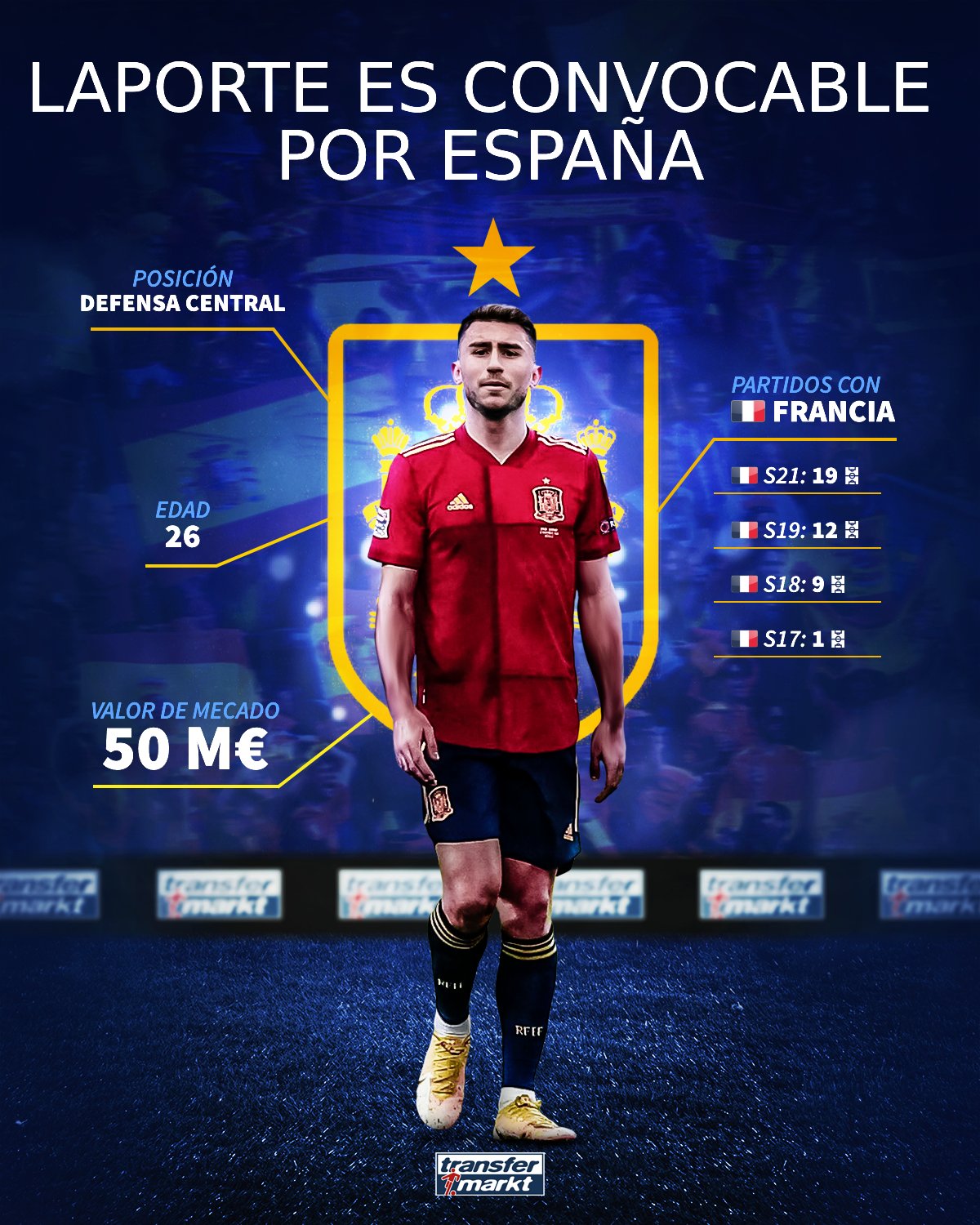 Milán 8 oct EFE- La final de la Liga de Naciones que enfrenta el domingo a España con Francia será un partido especial para Aymeric Laporte que decidió renunciar a la selección del país en el que nació para adquirir la nacionalidad española y Mikel Oyarzabal le ve tranquilo antes del reencuentro y como uno más aportando jerarquía a la Roja. 3 1 4 1 2. Stats of Aymeric Laporte.